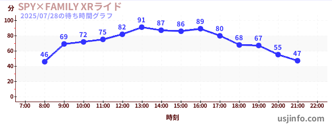 • SPY×FAMILY XRライド$B$N(B2025年07月28日の待ち時間