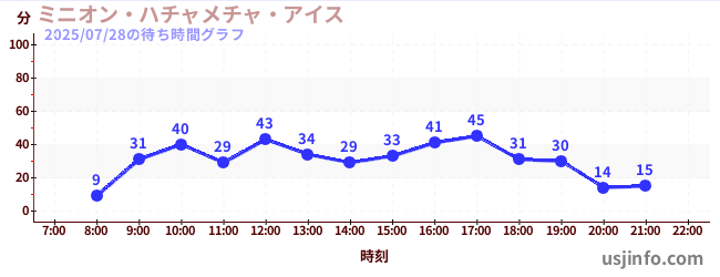 • ミニオン・ハチャメチャ・アイス$B$N(B2025年07月28日の待ち時間