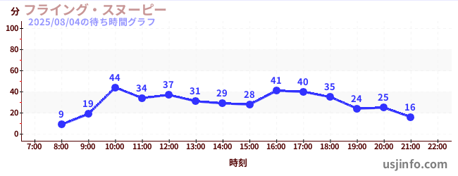 • スヌーピーのフライング•エース•アドベンチャー$B$N(B2025年08月04日の待ち時間