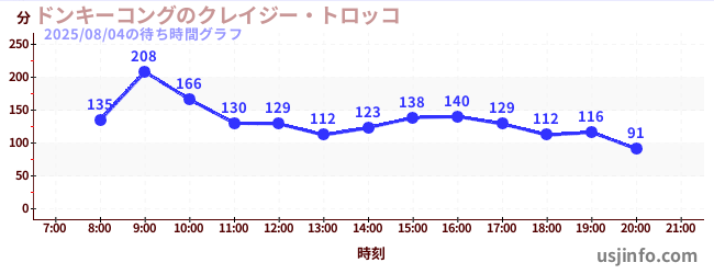 • ドンキーコングのクレイジー・トロッコ$B$N(B2025年08月04日の待ち時間