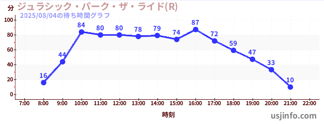 • ハリウッド・ドリーム・ザ・ライド$B$N(B2025年08月04日の待ち時間