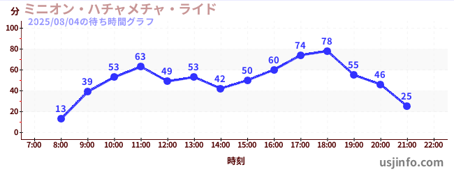 • ミニオン・ハチャメチャ・ライド$B$N(B2025年08月04日の待ち時間