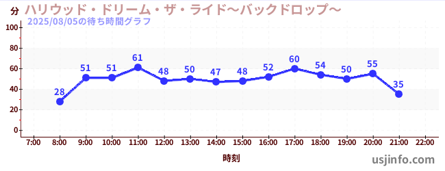 • ハリウッド・ドリーム・ザ・ライド〜バックドロップ〜$B$N(B2025年08月05日の待ち時間