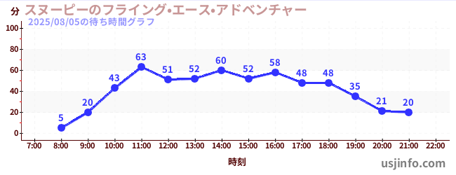 • スヌーピーのフライング•エース•アドベンチャー$B$N(B2025年08月05日の待ち時間