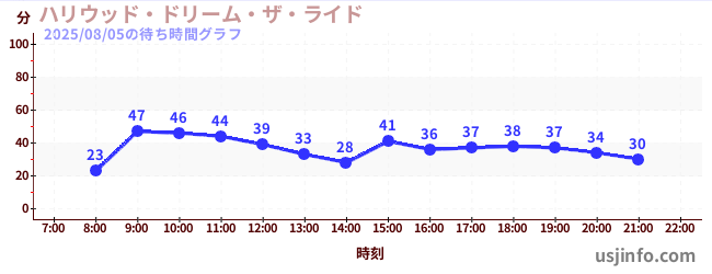 • ハリウッド・ドリーム・ザ・ライド$B$N(B2025年08月05日の待ち時間