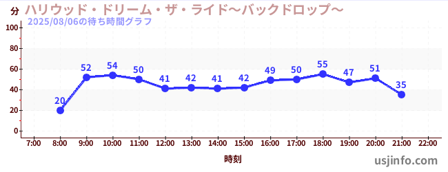 • ハリウッド・ドリーム・ザ・ライド〜バックドロップ〜$B$N(B2025年08月06日の待ち時間
