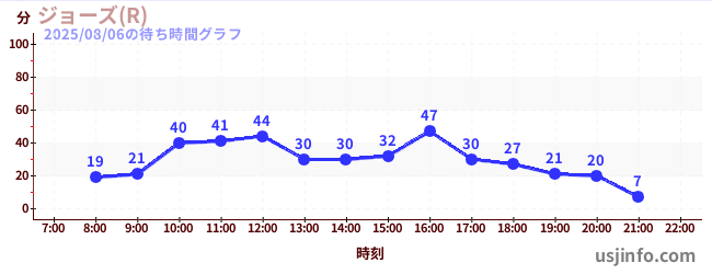 • ジョーズ(R)$B$N(B2025年08月06日の待ち時間