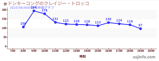 • ドンキーコングのクレイジー・トロッコ$B$N(B2025年08月06日の待ち時間