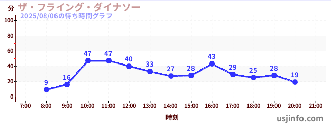 • ザ・フライング・ダイナソー$B$N(B2025年08月06日の待ち時間