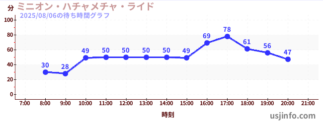 • ミニオン・ハチャメチャ・ライド$B$N(B2025年08月06日の待ち時間