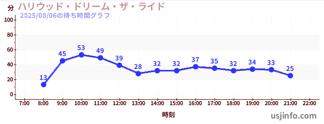 • ハリウッド・ドリーム・ザ・ライド$B$N(B2025年08月06日の待ち時間