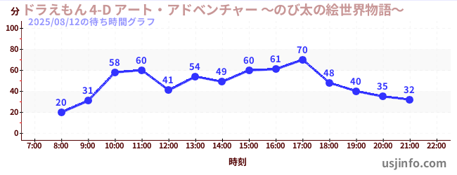 • ドラえもん 4-D アート・アドベンチャー ~のび太の絵世界物語~$B$N(B2025年08月12日の待ち時間