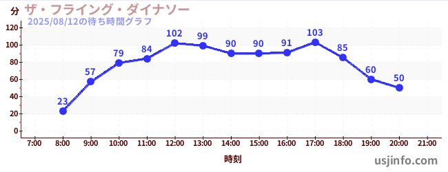 • ザ・フライング・ダイナソー$B$N(B2025年08月12日の待ち時間
