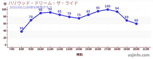 • ハリウッド・ドリーム・ザ・ライド$B$N(B2025年08月12日の待ち時間