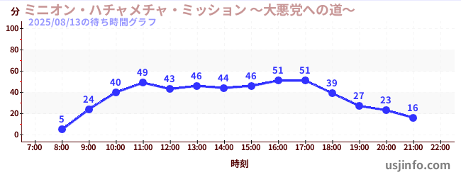 • ミニオン・ハチャメチャ・ミッション ~大悪党への道~$B$N(B2025年08月13日の待ち時間