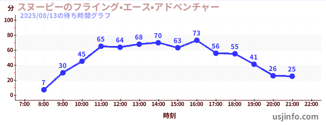 • スヌーピーのフライング•エース•アドベンチャー$B$N(B2025年08月13日の待ち時間