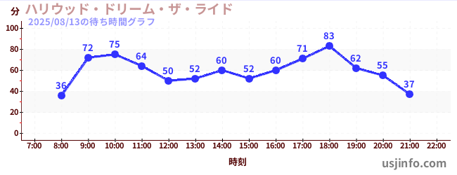 • ハリウッド・ドリーム・ザ・ライド〜バックドロップ〜$B$N(B2025年08月13日の待ち時間