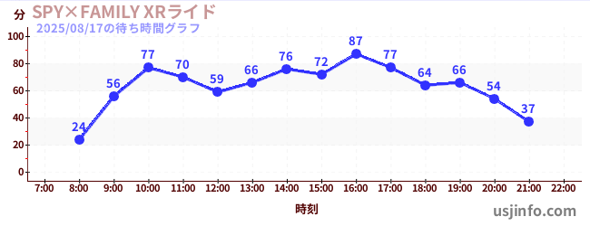 • SPY×FAMILY XRライド$B$N(B2025年08月17日の待ち時間