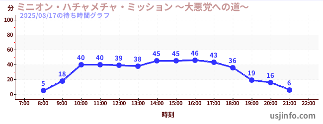 • ミニオン・ハチャメチャ・ミッション ~大悪党への道~$B$N(B2025年08月17日の待ち時間