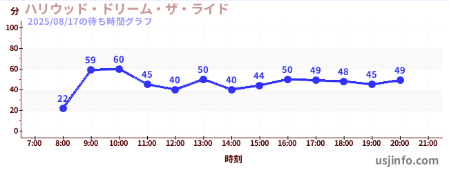 • ハリウッド・ドリーム・ザ・ライド$B$N(B2025年08月17日の待ち時間