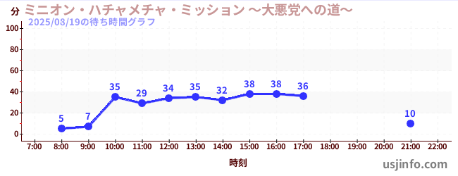 • ミニオン・ハチャメチャ・ミッション ~大悪党への道~$B$N(B2025年08月19日の待ち時間