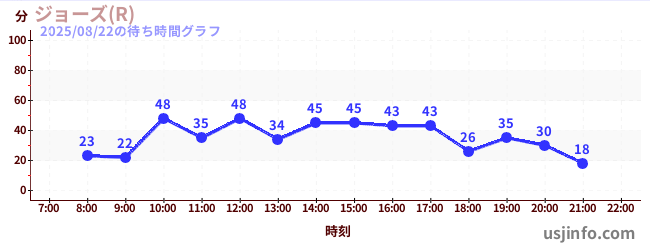 • ジョーズ(R)$B$N(B2025年08月22日の待ち時間