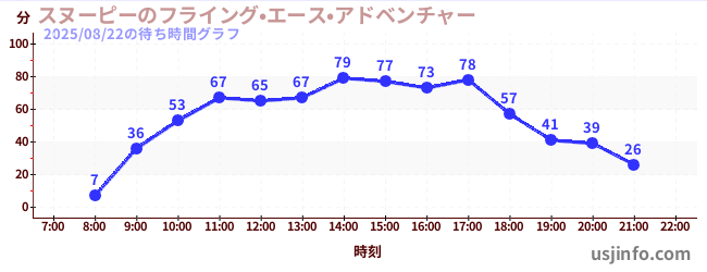 • スヌーピーのフライング•エース•アドベンチャー$B$N(B2025年08月22日の待ち時間