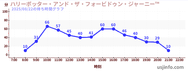 • ハリーポッター・アンド・ザ・フォービドゥン・ジャーニー™$B$N(B2025年08月22日の待ち時間