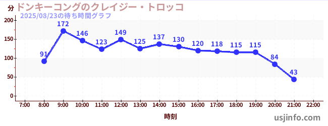 • ドンキーコングのクレイジー・トロッコ$B$N(B2025年08月23日の待ち時間