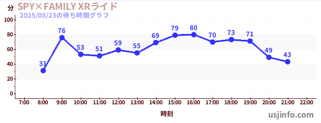 • SPY×FAMILY XRライド$B$N(B2025年08月23日の待ち時間