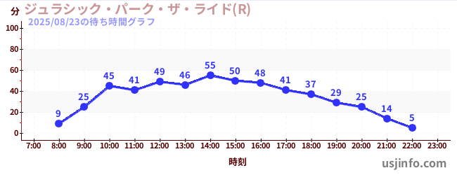 • ジュラシック・パーク・ザ・ライド(R)$B$N(B2025年08月23日の待ち時間