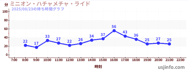 • ミニオン・ハチャメチャ・ライド$B$N(B2025年08月23日の待ち時間