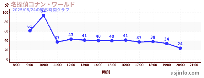 • 名探偵コナン・ワールド$B$N(B2025年08月24日の待ち時間