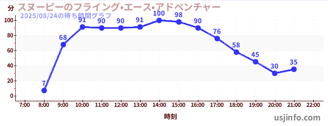 • スヌーピーのフライング•エース•アドベンチャー$B$N(B2025年08月24日の待ち時間