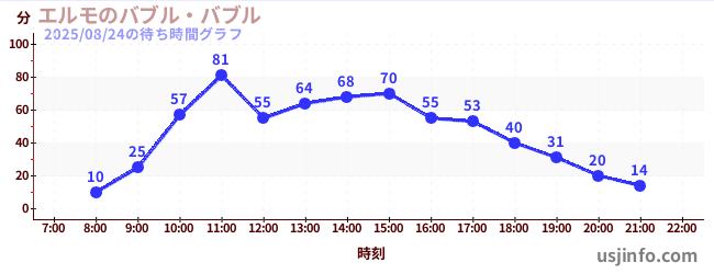 • エルモのバブル・バブル$B$N(B2025年08月24日の待ち時間