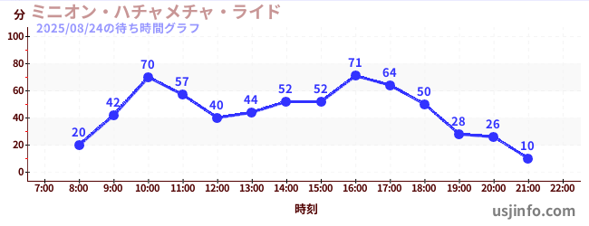 • ミニオン・ハチャメチャ・ライド$B$N(B2025年08月24日の待ち時間