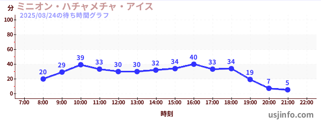 • ミニオン・ハチャメチャ・アイス$B$N(B2025年08月24日の待ち時間