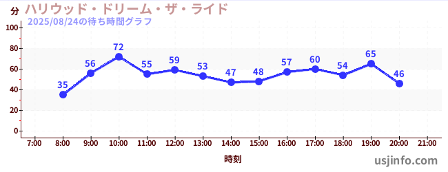 • ハリウッド・ドリーム・ザ・ライド〜バックドロップ〜$B$N(B2025年08月24日の待ち時間