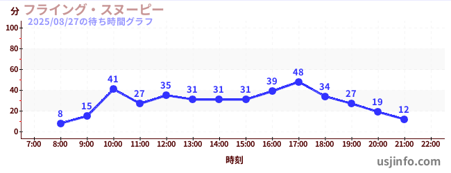 • フライング・スヌーピー$B$N(B2025年08月27日の待ち時間