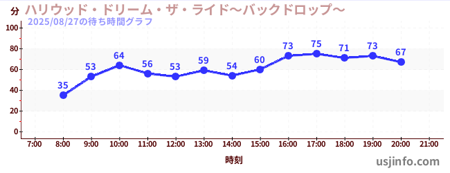 • ハリウッド・ドリーム・ザ・ライド〜バックドロップ〜$B$N(B2025年08月27日の待ち時間