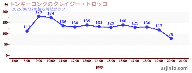 • ドンキーコングのクレイジー・トロッコ$B$N(B2025年08月27日の待ち時間