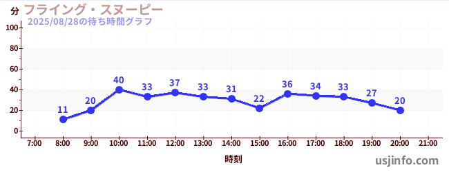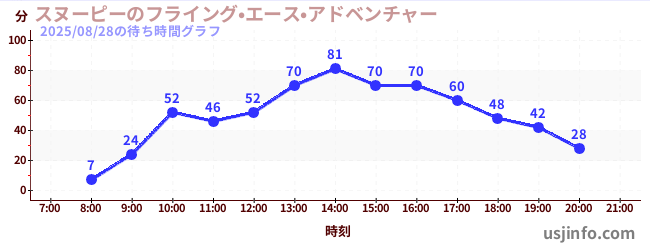 • スヌーピーのフライング•エース•アドベンチャー$B$N(B2025年08月28日の待ち時間