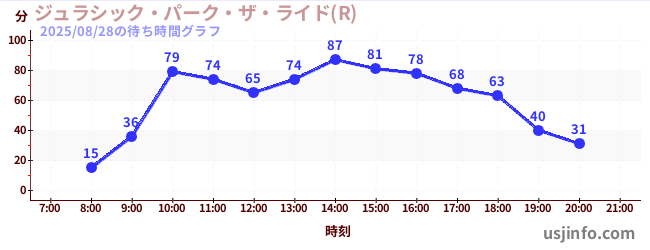 • ジュラシック・パーク・ザ・ライド(R)$B$N(B2025年08月28日の待ち時間