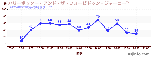 • ハリーポッター・アンド・ザ・フォービドゥン・ジャーニー™$B$N(B2025年08月28日の待ち時間