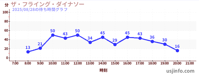 • ザ・フライング・ダイナソー$B$N(B2025年08月28日の待ち時間
