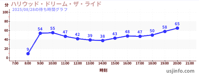 • ハリウッド・ドリーム・ザ・ライド〜バックドロップ〜$B$N(B2025年08月28日の待ち時間