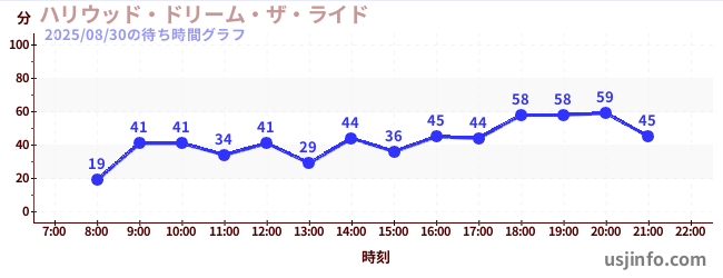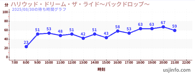 • ハリウッド・ドリーム・ザ・ライド〜バックドロップ〜$B$N(B2025年08月30日の待ち時間