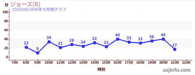 • ジョーズ(R)$B$N(B2025年08月30日の待ち時間
