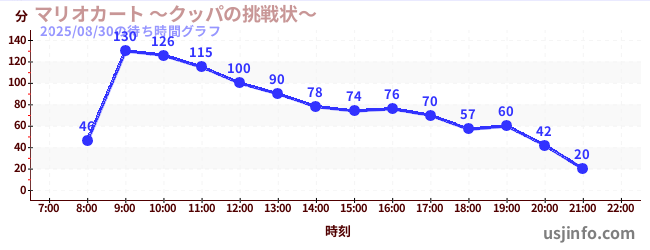 • マリオカート ~クッパの挑戦状~$B$N(B2025年08月30日の待ち時間