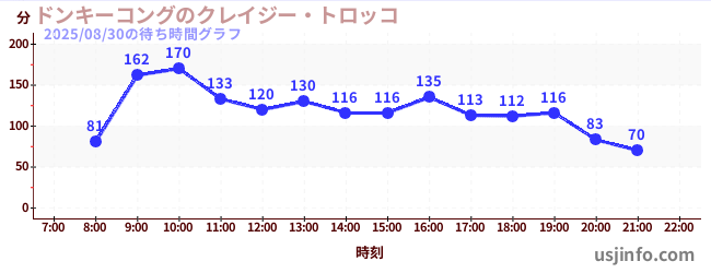 • ドンキーコングのクレイジー・トロッコ$B$N(B2025年08月30日の待ち時間